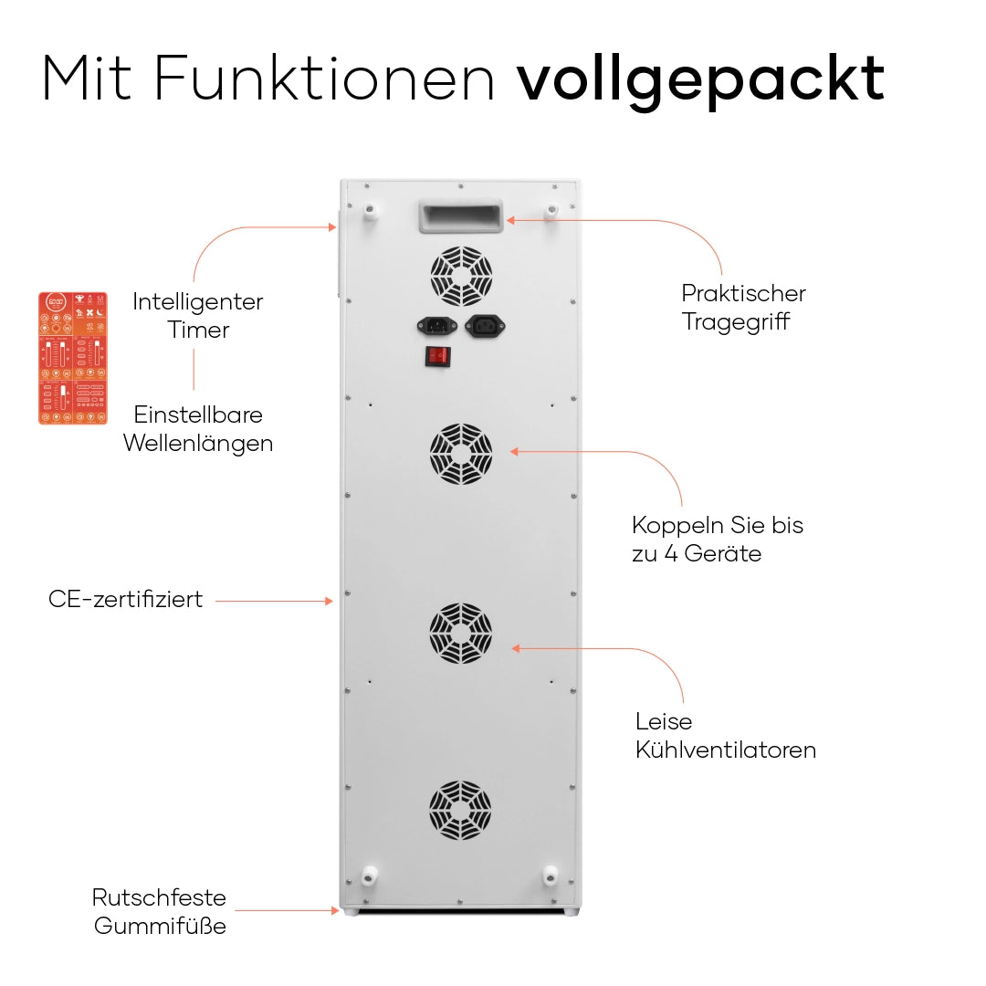 - Sicherheit: Nicht mit photosensibilisierenden Medikamenten kombinieren. Bei Schwangerschaft oder Vorerkrankungen Ihren Arzt konsultieren.