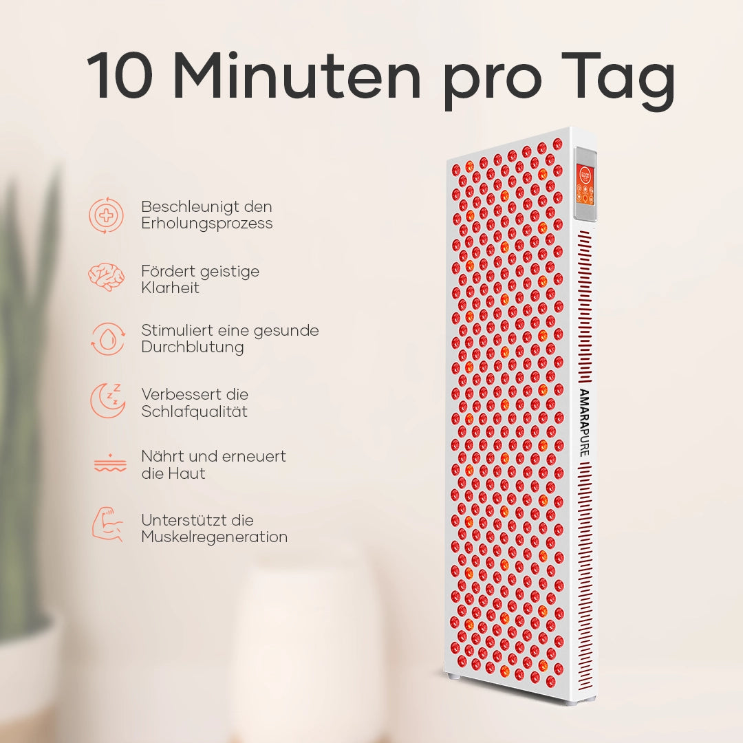 Leistungsstarke Rotlichttherapie für den Heimgebrauch, die Ihre Haut, Erholung und Energie unterstützt.