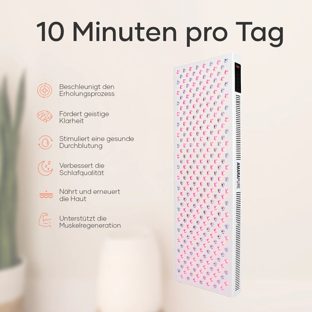 Leistungsstarke Rotlichttherapie für den Heimgebrauch, die Ihre Haut, Erholung und Energie unterstützt.