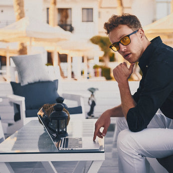 Protect your eyes from artificial blue light. For better focus and sleep.