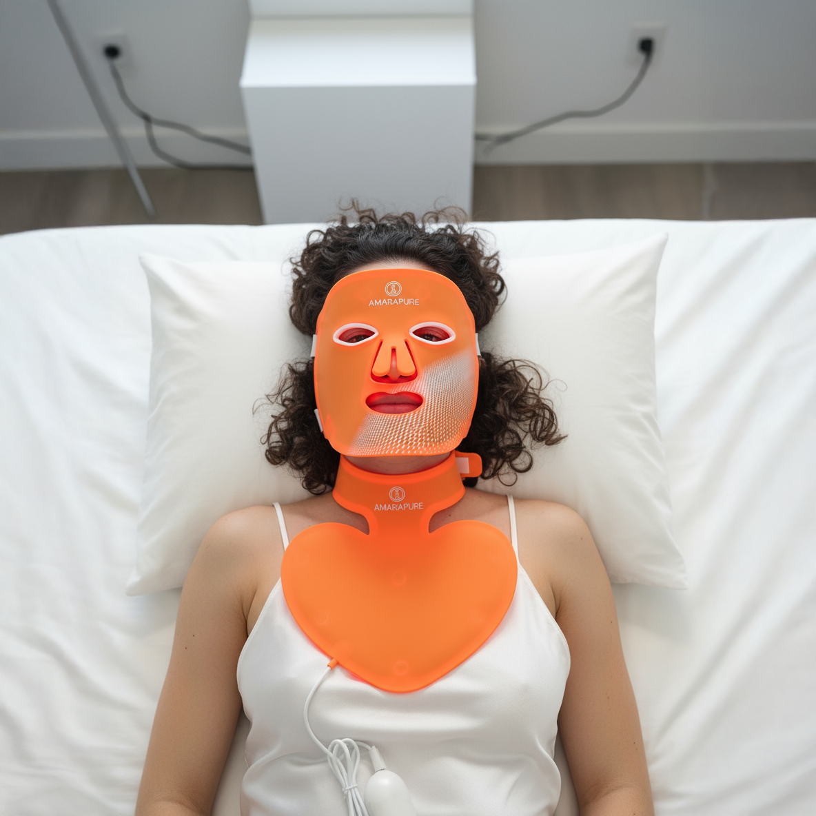 The red light mask stimulates collagen production and improves skin texture. Your skin feels firmer, smoother, and visibly fresher — every day anew.