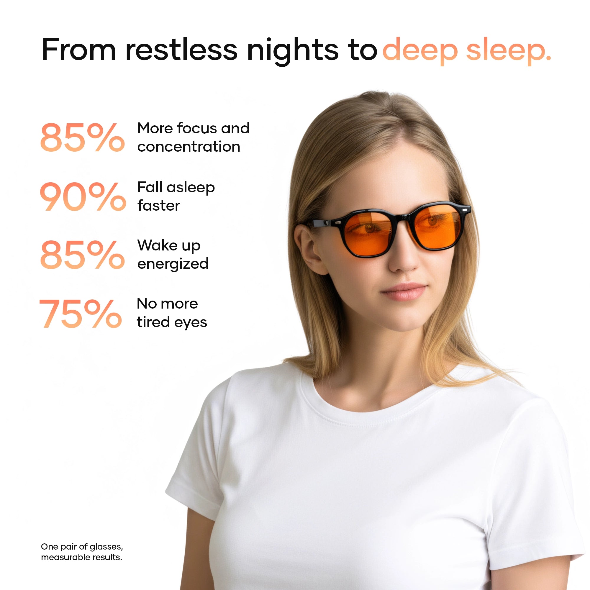 Wear your glasses at night for a calming effect on your eyes and sleep faster and more deeply.