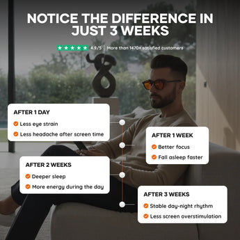 Sie wissen, wie wichtig Schlaf und ein ausgeglichener Hormonhaushalt sind. Schützen Sie Ihre Augen mit Amarapure vor dem ständigen Bildschirmlicht und unterstützen Sie Ihre Gesundheitsvorsorge mit den besten Hilfsmitteln.