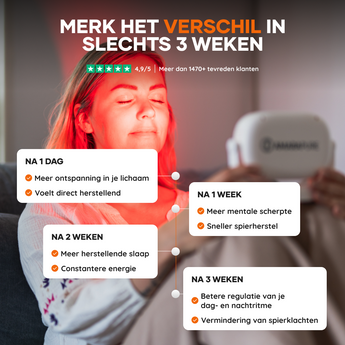 • Meer energie & betere nachtrust bij regelmatige sessies — korte dagelijkse behandelingen kunnen al verschil maken.