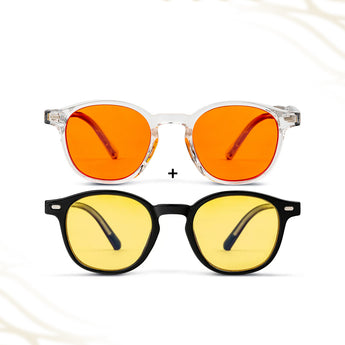 Met de AmaraPure All-Day Protection Bundle ontvang je zowel de Daygold als de Midnight blauwlichtbril. Samen bieden ze volledige bescherming voor je ogen, je focus en je slaap — precies op de momenten dat je het nodig hebt. Ideaal voor iedereen die veel tijd doorbrengt voor schermen, zowel overdag als in de avond.