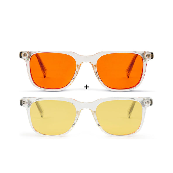 Gebruik de geschikte bril afhankelijk van het moment van de dag — Daygold bij daglicht of lichte activiteiten, Midnight bij fel kunstlicht in de avond. Beide brillen beschermen je ogen tegen blauw licht afkomstig van LED- en andere kunstlichtbronnen.