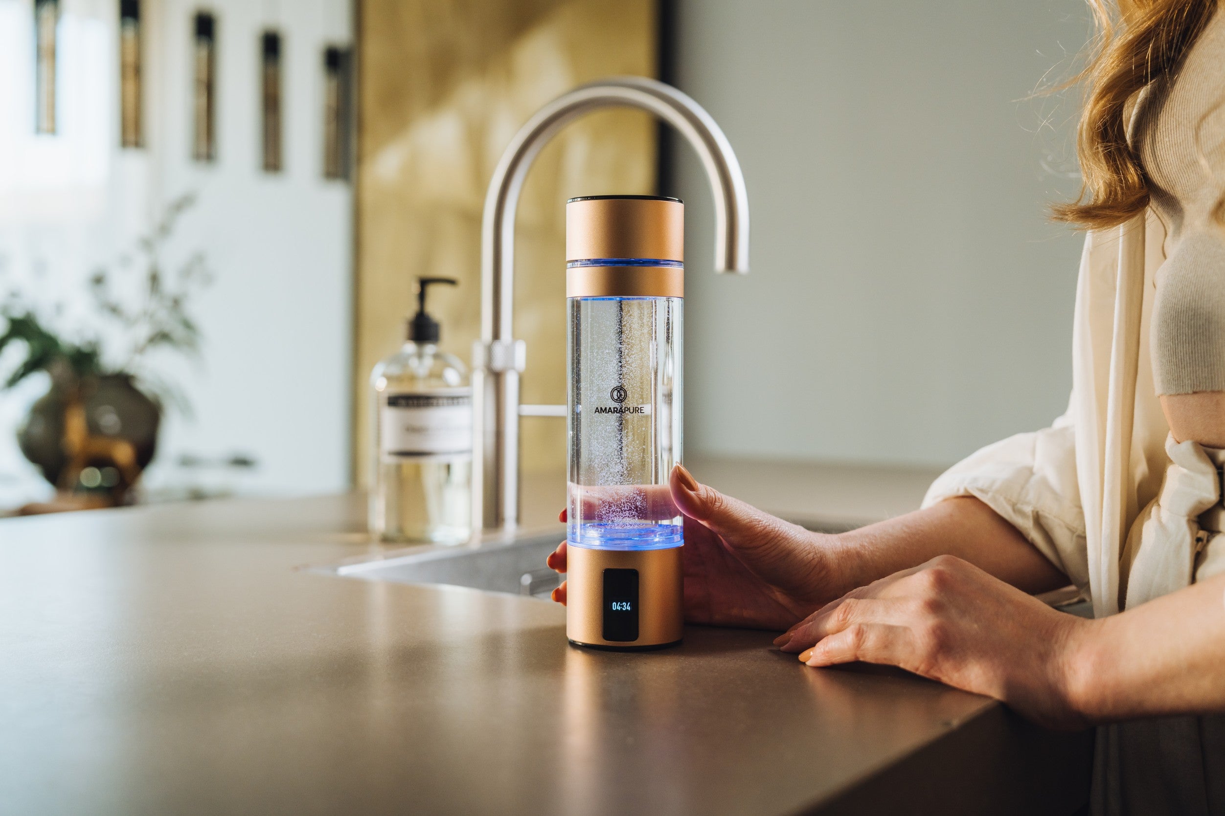 Slipp løs vannets kraft. AmaraPure™ Aman beriker drikkevannet ditt med molekylært hydrogen på bare 3 minutter – for mer energi, raskere restitusjon og dyp cellenæring. Kompakt, stilig og alltid for hånden.