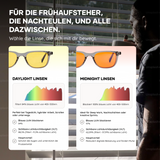 Blockiert 84 % blaues Licht nach Sonnenuntergang.
