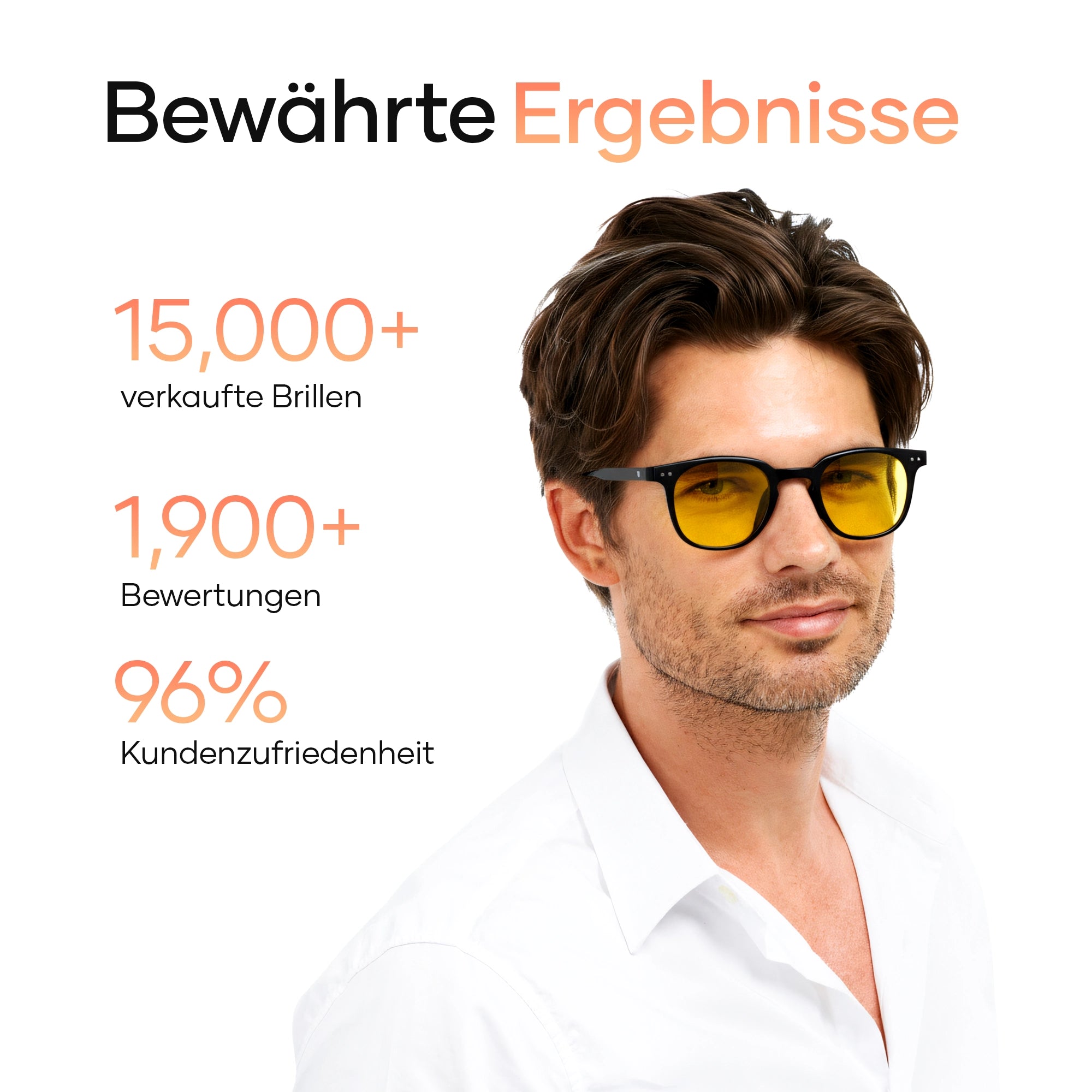 Unsere Blaulichtbrillen bieten wissenschaftlich fundierten Schutz für deine Augen und deinen Schlaf. Ideal für alle, die tagsüber und abends viel Zeit vor Bildschirmen verbringen.