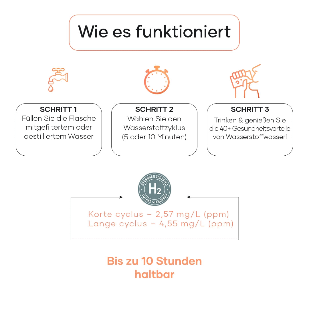 • Wo auch immer Sie sind, Sie können die Vorteile von Wasserstoffwasser problemlos genießen.