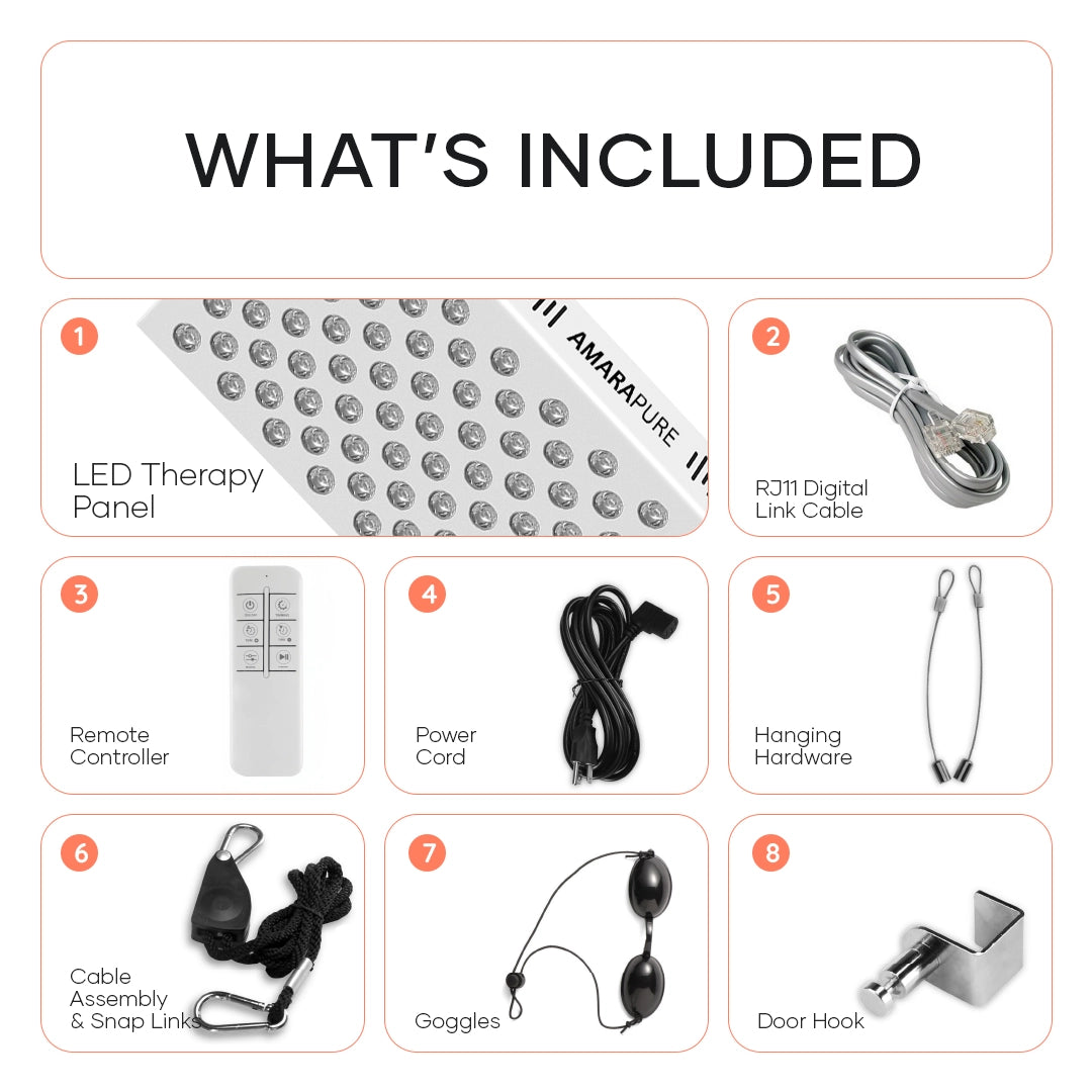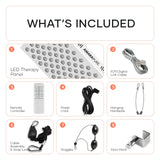 Übersicht aller Teile, die mit dem LED-Therapiepanel geliefert werden.