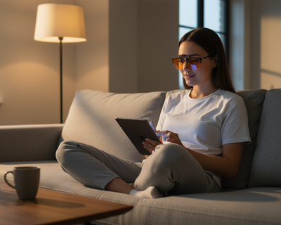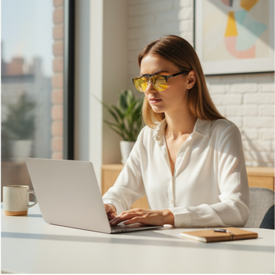 Unsere Blaulichtbrille bietet wissenschaftlich erwiesenen Schutz für Ihre Augen und Ihren Schlaf. Ideal für alle, die viel Zeit vor dem Bildschirm verbringen, sowohl tagsüber als auch nachts.