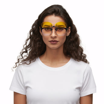 Klappen Sie Ihre Clip-Ons nach oben oder unten, wann immer Sie möchten. Wechseln Sie in Sekundenschnelle zwischen DayGold am Tag und Midnight in der Nacht.